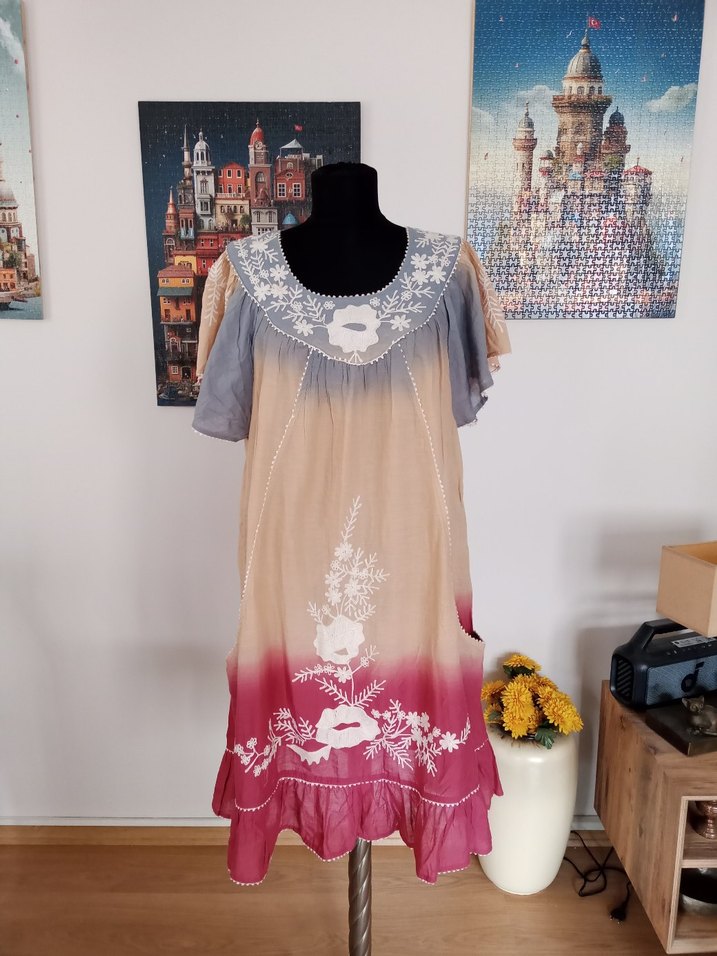 Bohem Çok Renkli Batik yazlık elbise