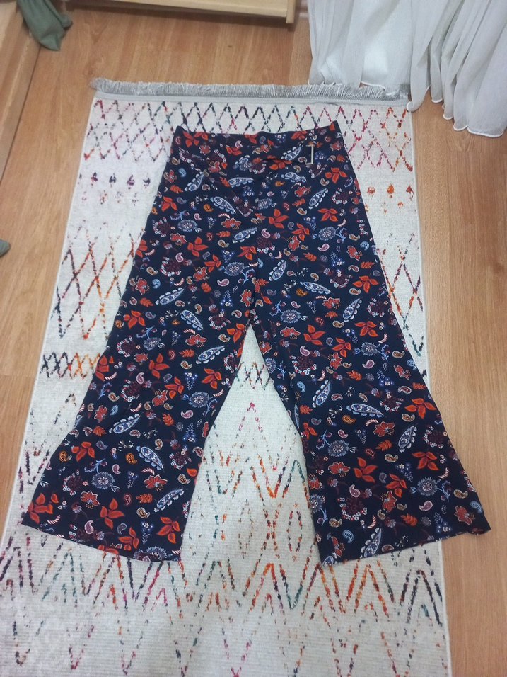 Çok renkli çiçek desenli, bol kesim bohem kumaş pantolon. Outdoor kullanım için uygundur. Yaz için uygun,tiril pantolon