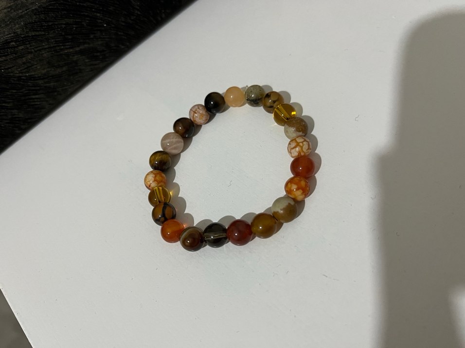 Bohem tarzda, koyu tonlu çok renkli boncuklardan oluşan bileklik, günlük kullanıma uygundur.