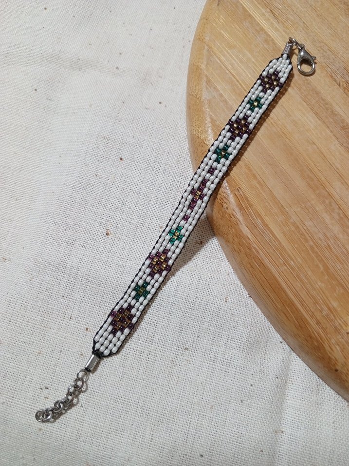 Kadınlar için çok renkli etnik desenli, boncuklu bohem tarzda günlük kullanıma uygun bileklik.