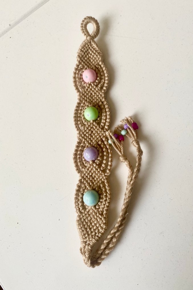 Makrome bileklik. Her ölçüde bileğe ayarlanabilir şekilde yapılmış. Marka temsili.