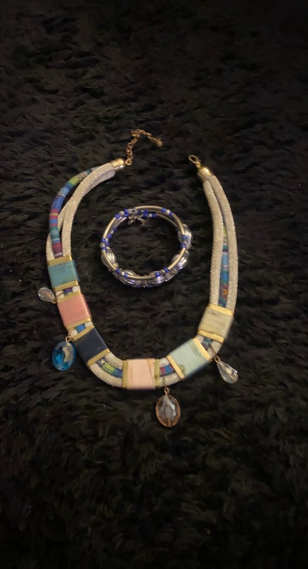 Bohem tarzda, pastel çok renkli boncuklar ve etnik desenler içeren uzun kolye. Uyumlu bileklik ile günlük kullanıma uygundur.