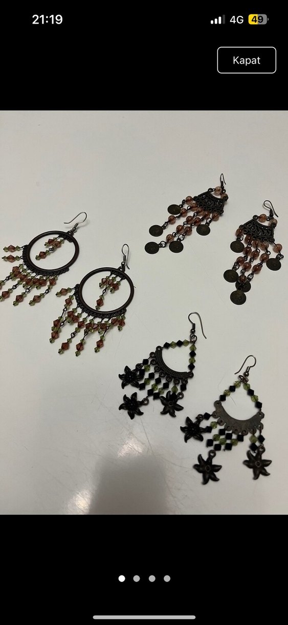 Günlük kullanıma uygun, çok renkli boncuklar ve nakış detaylarıyla uzun bohem tarzda küpeler.