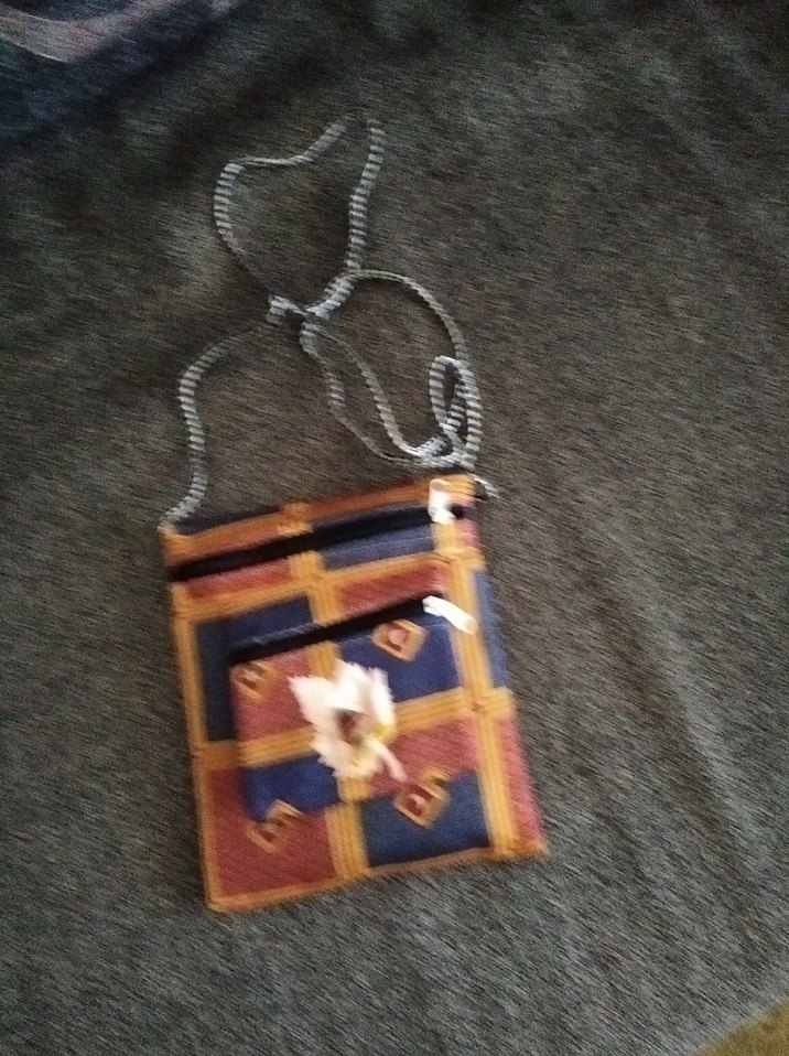 Bohem tarzda çok renkli desenli, fermuarlı çocuk cüzdanı. Uzun askısıyla kolay taşınır.