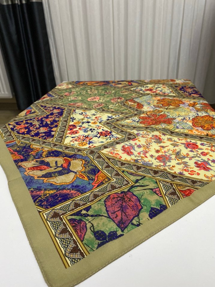 Kadınlar için çok renkli, koyu tonlarda desenli ve bohem tarzda eşarp