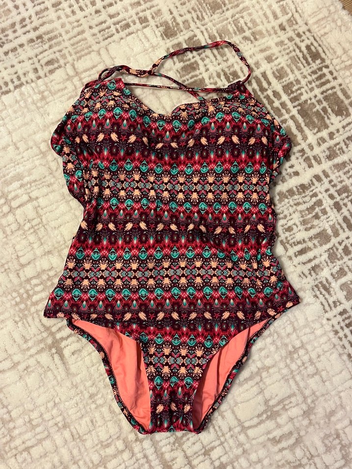 Sırtı ince askılı, dantel detaylı, çok renkli desenli bohem tarzı kadın mayo. penti marka 34- S beden