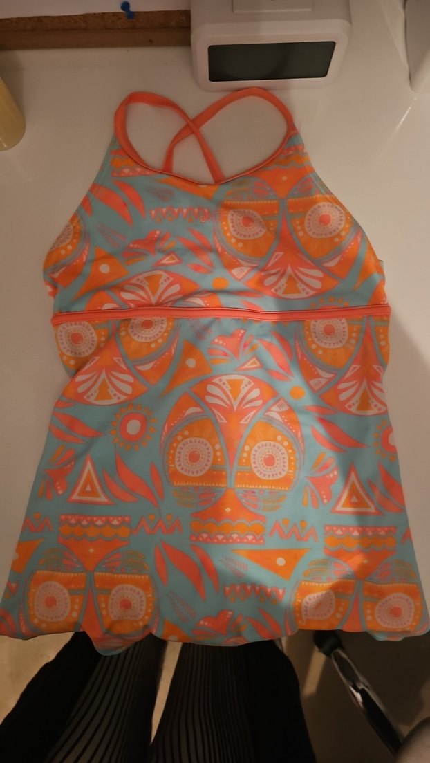 Kolsuz, pastel çok renkli desenli ve drapeli tasarıma sahip, vücuda oturan kesim ve çapraz askılı bohem tarz mayo.