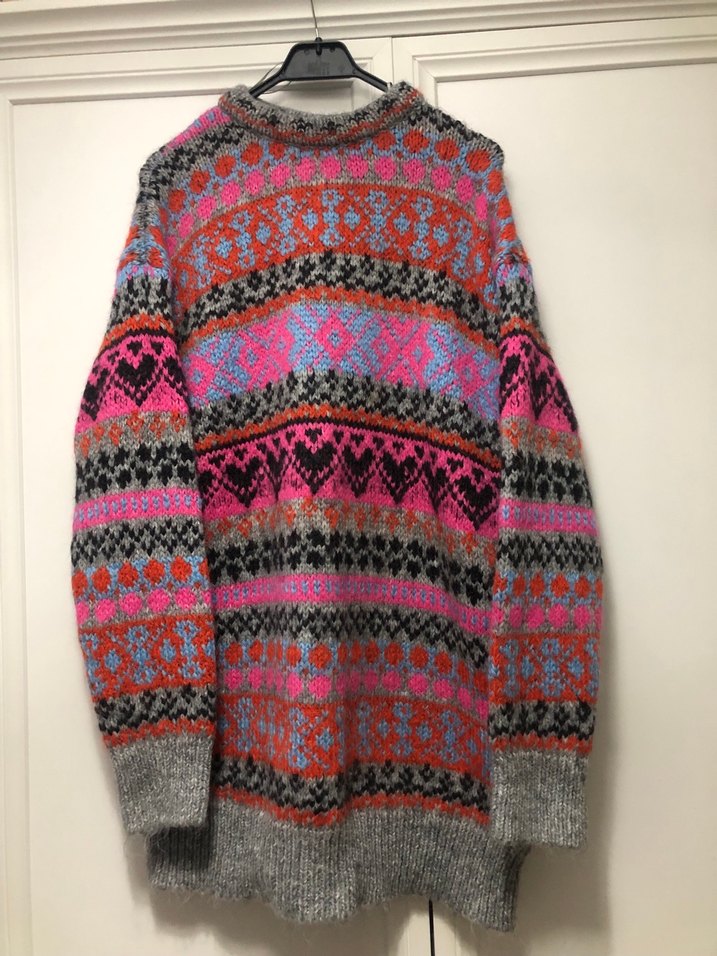 Rahat kesim, uzun kollu ve yuvarlak yakalı çok renkli deseniyle bohem tarzda triko kazak. Günlük kullanım için yumuşak ve konforlu.Elbise olarakta kullanılabilir.Boyu 80cmdir.