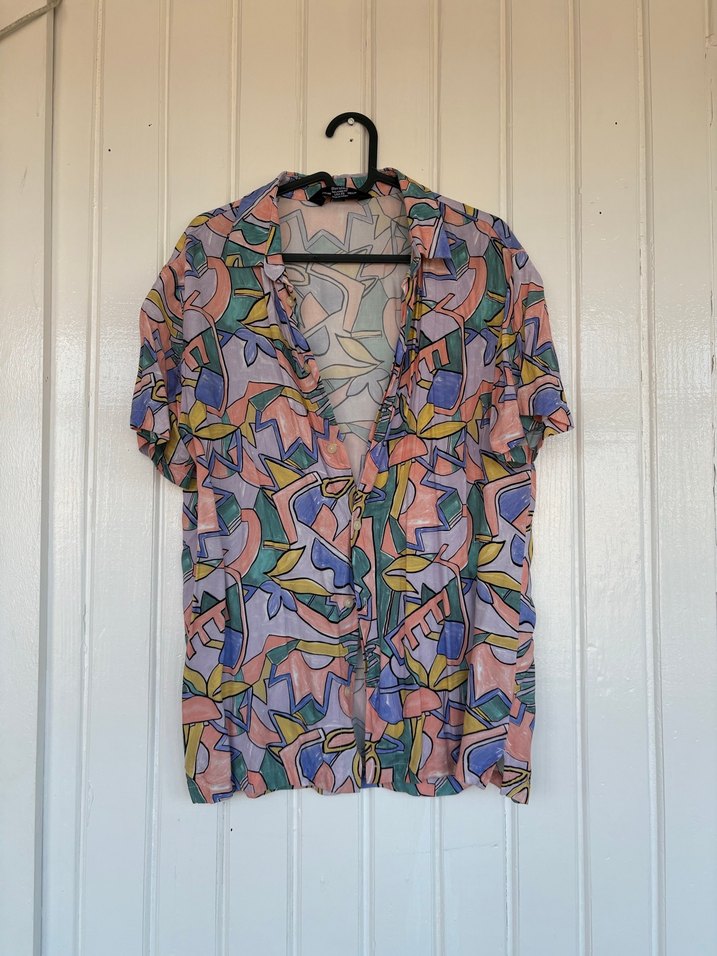 Bohem Çok Renkli Düğmeli Kısa Kollu Gömlek