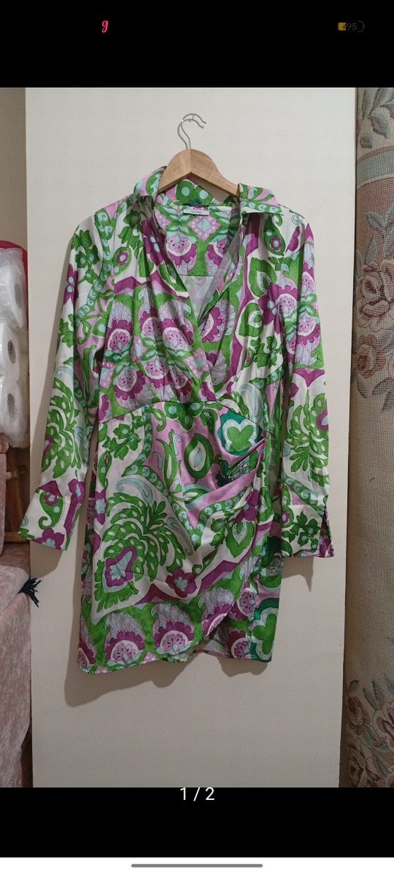 Kadınlar için bohem tarzda, bol kesim ve uzun kollu elbise. Çok renkli, pastel tonlarda uzun boyda ve batik desenlidir.