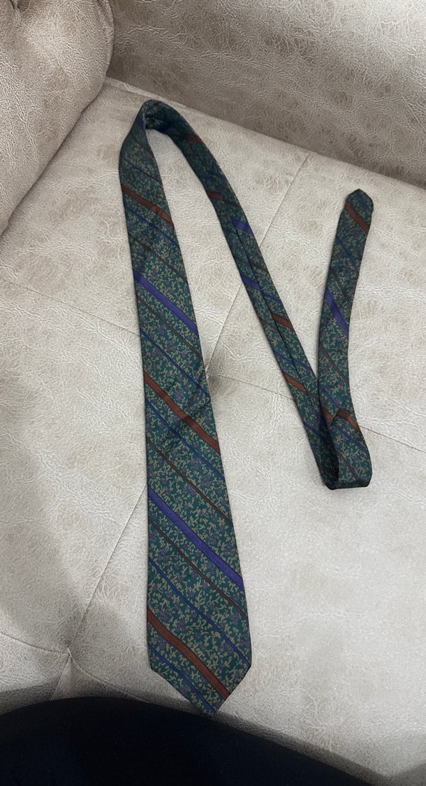 Bu erkek kravatı, koyu tonlu çok renkli çizgili ve ince çiçek desenleriyle bohem tarzını yansıtıyor. Retro ve Parisli stiline uygundur.