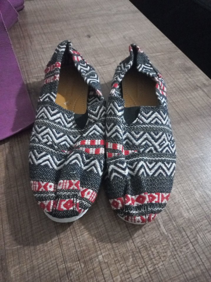 Gri ve çok renkli etnik desenli, Kauçuk tabanlı, bohem ve retro tarza uygun rahat tasarım.