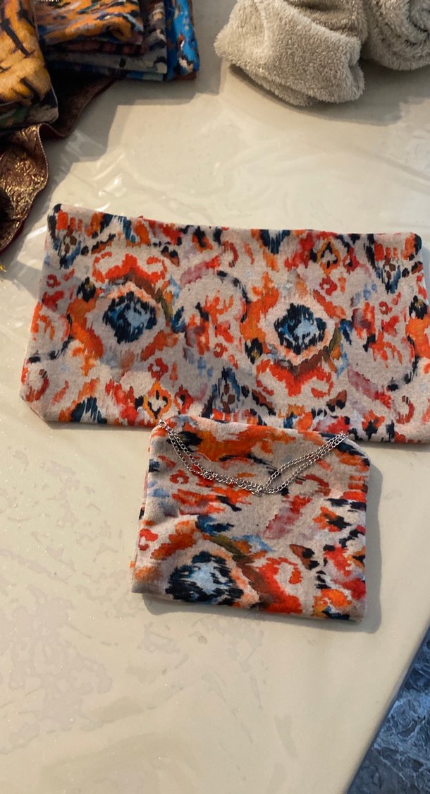Sentetik kumaştan yapılmış, çok renkli desenli ve fermuarlı bohem tarzı kadın çantası . Retro görünüme uygundur.