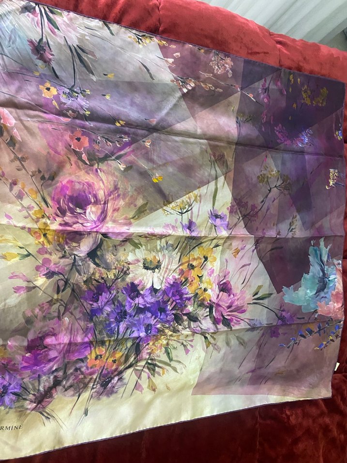 Çok renkli, ipek dokulu ve drapeli bu fular, koyu bohem çiçek desenleriyle şık bir görünüm sunar.