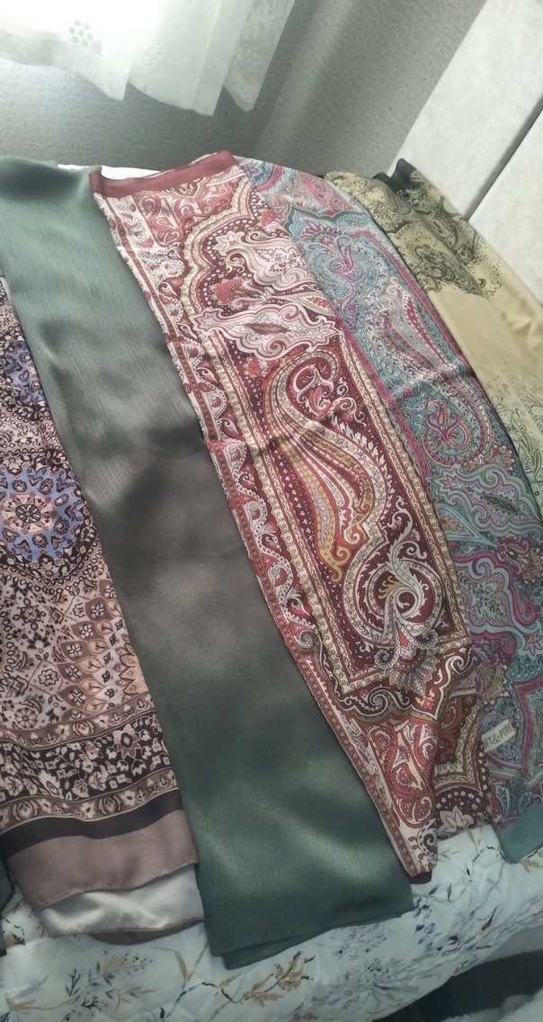 İpek dokulu, bohem desenli ve çok renkli gri tonlarda, drapeli şal. Retro ve hippie tarzını yansıtan bir aksesuar. tane 200₺