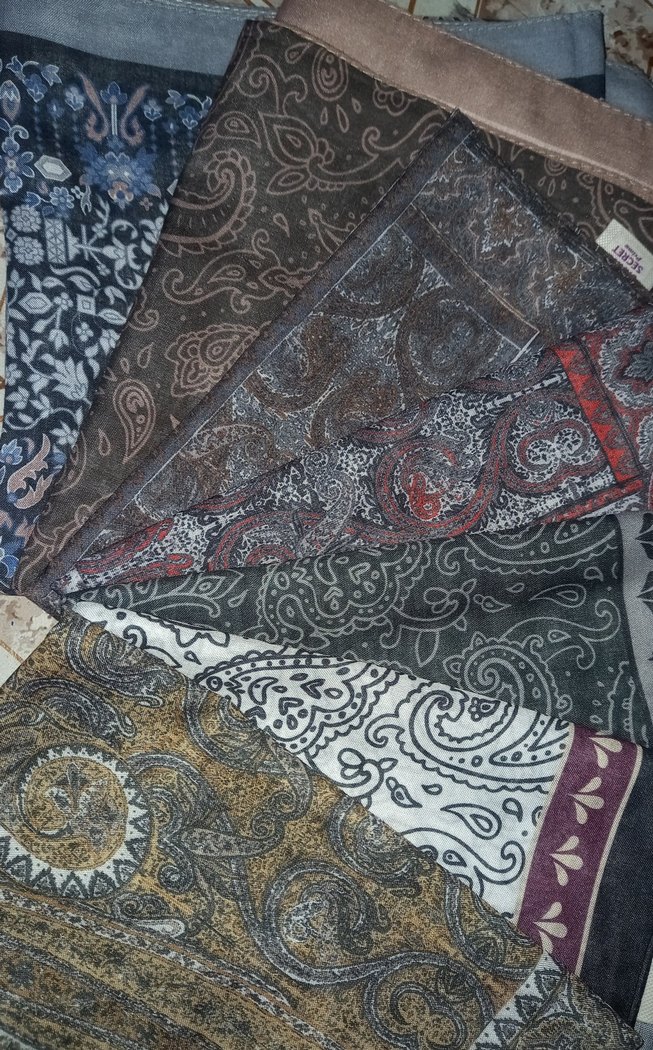 Drapeli, koyu tonlarda çok renkli bohem desenli kadın şal. Retro ve hippie stillere uygundur.