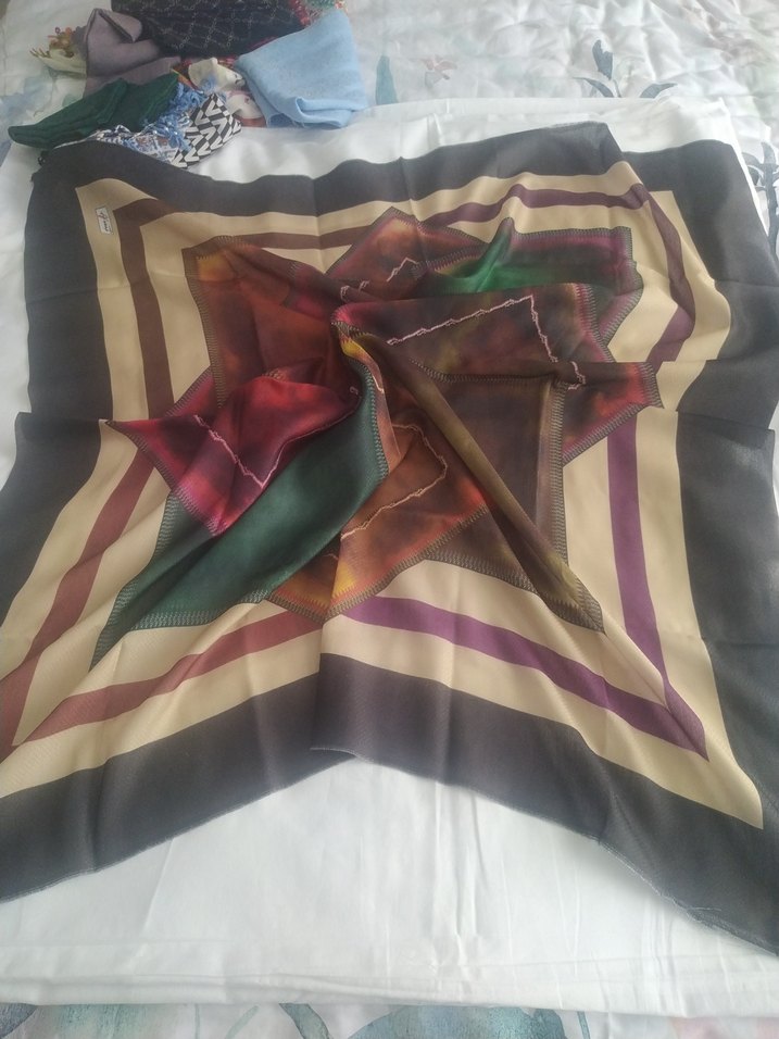 Kadınlar için çok renkli, koyu tonlarda, dökümlü bohem tarzda sentetik kumaştan yapılmış eşarp