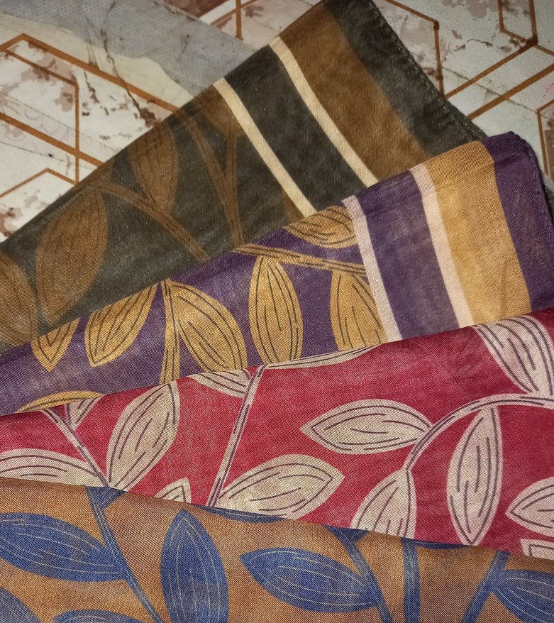 Yumuşak sentetik kumaştan yapılmış, koyu çok renkli yaprak desenli, bohem tarzı kadın eşarp