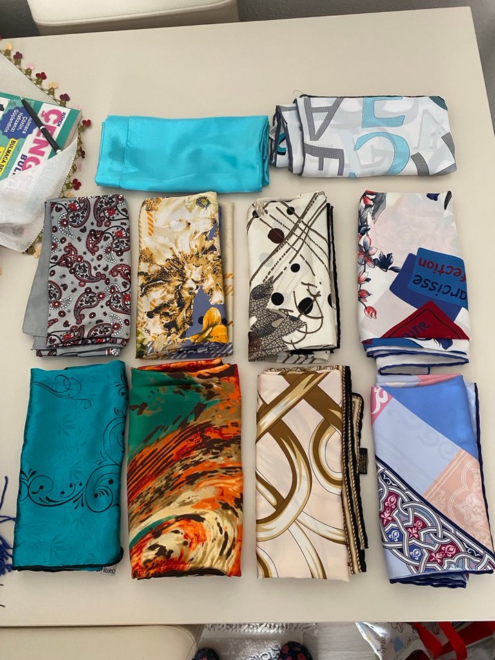Bohem tarzda, hafif çok renkli desenlere sahip dokulu kadın şal. Zarifçe drapelenir ve Paris retro havası taşır.sadece rakamlı yazılı olan etiketlidir diğerleri çok az kullanılmıştır . Bazılarının etiketi yok ama hiç kullanılmadı
