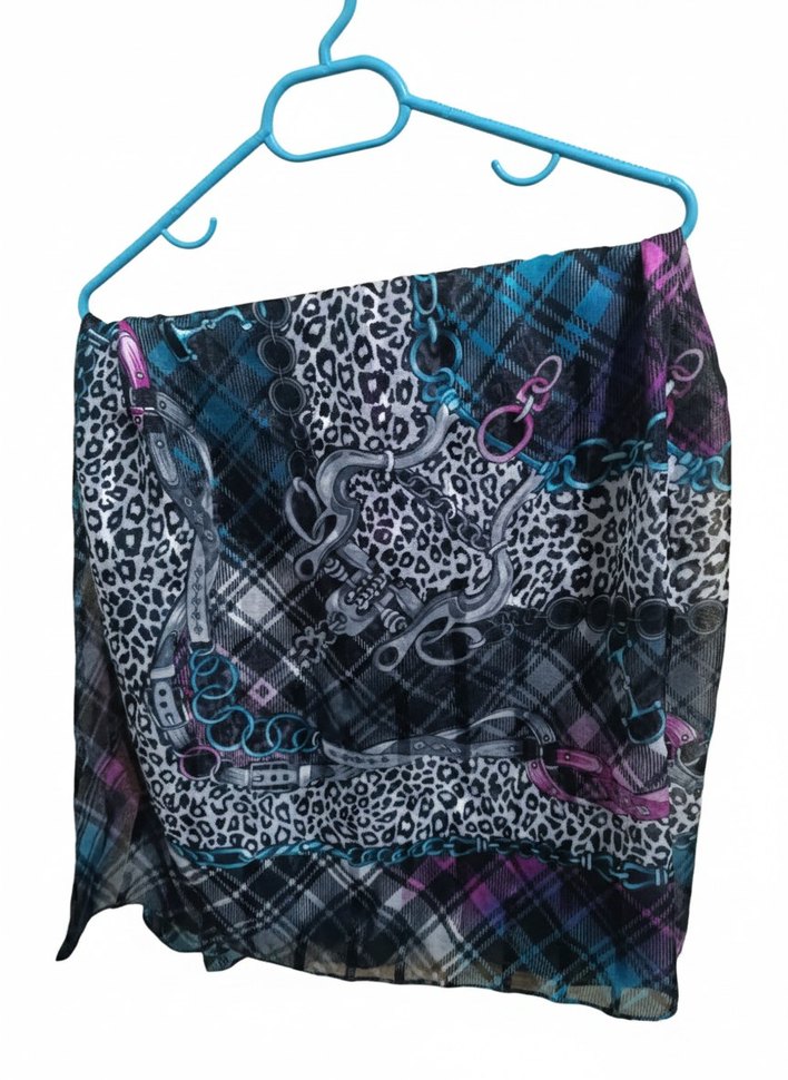 Kadınlar için çok renkli, koyu tonlu, ekose ve hayvan desenleriyle bohem tarzda, yumuşak sentetik kumaştan drapeli fular.