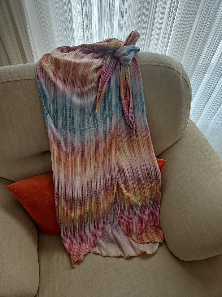 Kadınlar için çok renkli, bohem tarzda, dökümlü tasarım pareo etek ipekyol burcu esmersoy