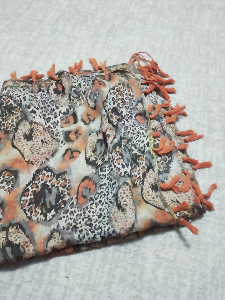 Sentetik kumaştan, kürk detaylı, canlı desenlere sahip bohem tarzda çok renkli kadın şal.