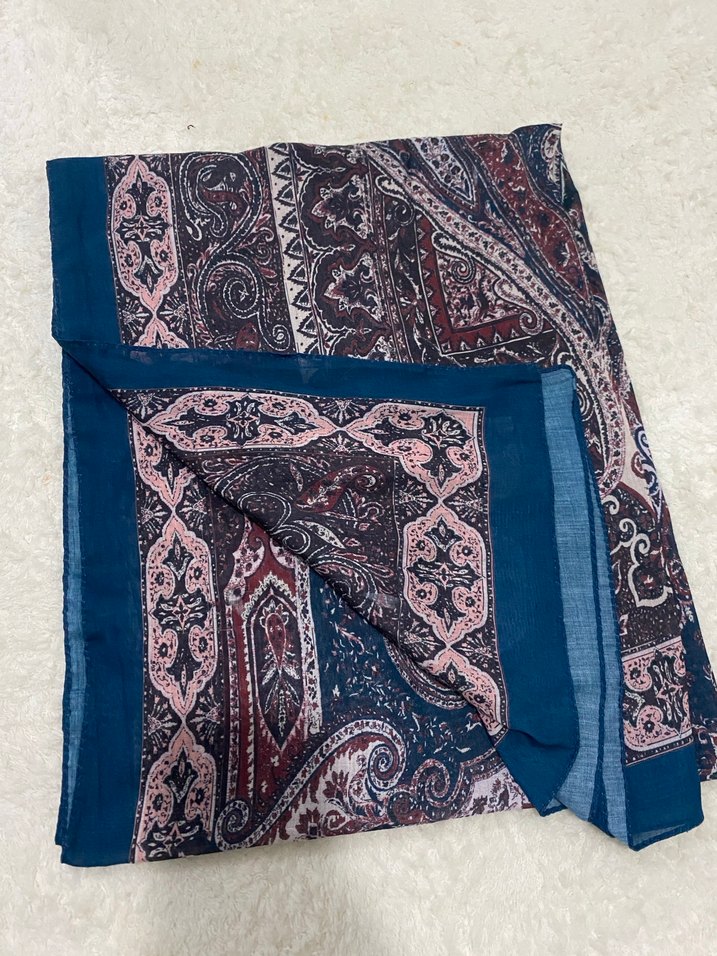 Kadın şal, yumuşak sentetik kumaştan yapılmış, çok renkli koyu bohem desenli ve drapeli tasarıma sahiptir.