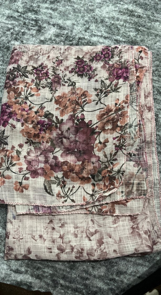Bohem tarzda, çok renkli çiçek desenli, gri zeminli, yumuşak dokulu kadın şalı.
