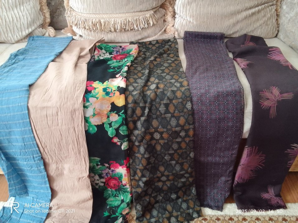 Bohem tarzda, çok renkli ve koyu tonlarda, çiçekli ve geometrik desenli, drape kesim kadın şalları seti. Moda tutkunları için ideal.