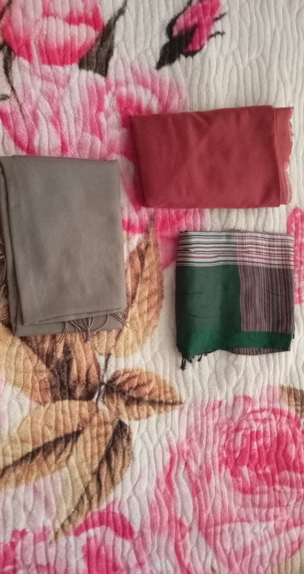 50 TL tanesi , kiremit ve yeşil tonlarında çok renkli, dökümlü tekstil kadın şal seti, rahat ve bohem tarz için uygundur.