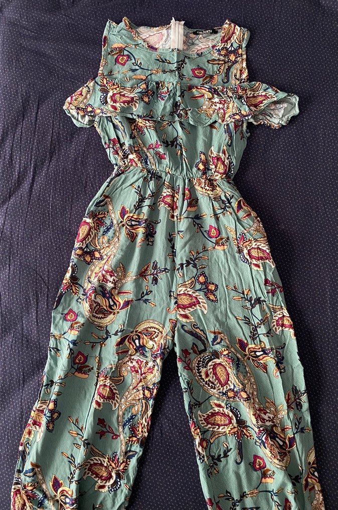 Kadınlar için bol kesim, desenli ve drapeli detaylara sahip uzun tulum. Askısız ve kolsuz, yumuşak sentetik kumaş, pastel tonlarda, günlük kullanım için uygun.