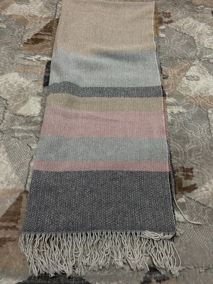 Çok renkli, yumuşak yün ve örgü dokusuyla bohem tarzda, püsküllü kadın şalı. Rahat ve sıcak tutar.