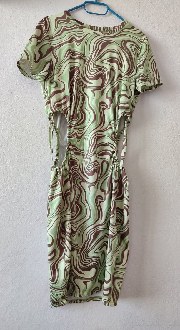 Bu bohem elbise, bisiklet yakalı kısa kollu, pastel tonlarda batik desenlidir. beli dekolte detaylarıyla romantik akşamlar için uygundur. boyu toplam 90 cm. yan dekolte detayı ayarlanabilir boyu daha kısa yada kısa olarak kullanılabilir