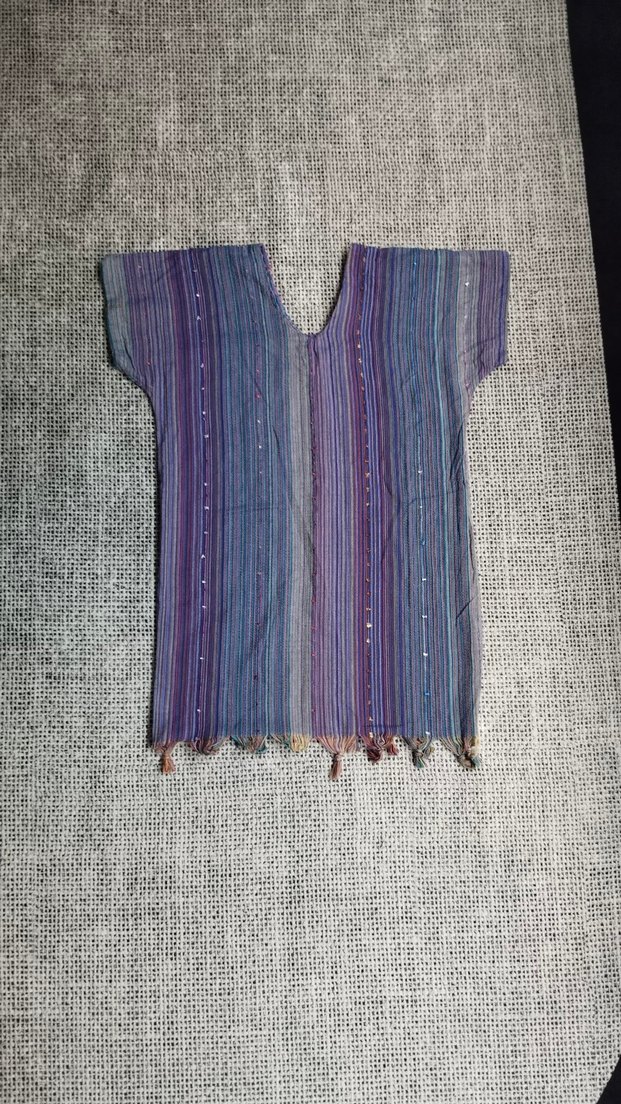 Renkli çizgili desenli, kısa kollu, V yakalı, kadın tunik elbise. Yumuşak dokulu, örme, bohem tarzda Plaj elbisesi Hiç giyilmedi #plajelbisesi #otantik #hipi #etnik #bohem