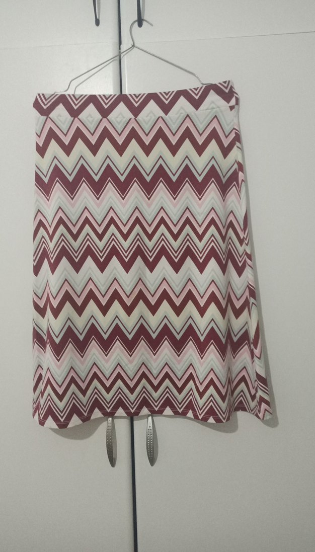 Bohem tarzda, bol kesim ve pileli sentetik kumaştan yapılmış, pastel çok renkli zigzag desenli kadın midi eteği. Günlük kullanım için uygundur. 36,38,40 beden giyer