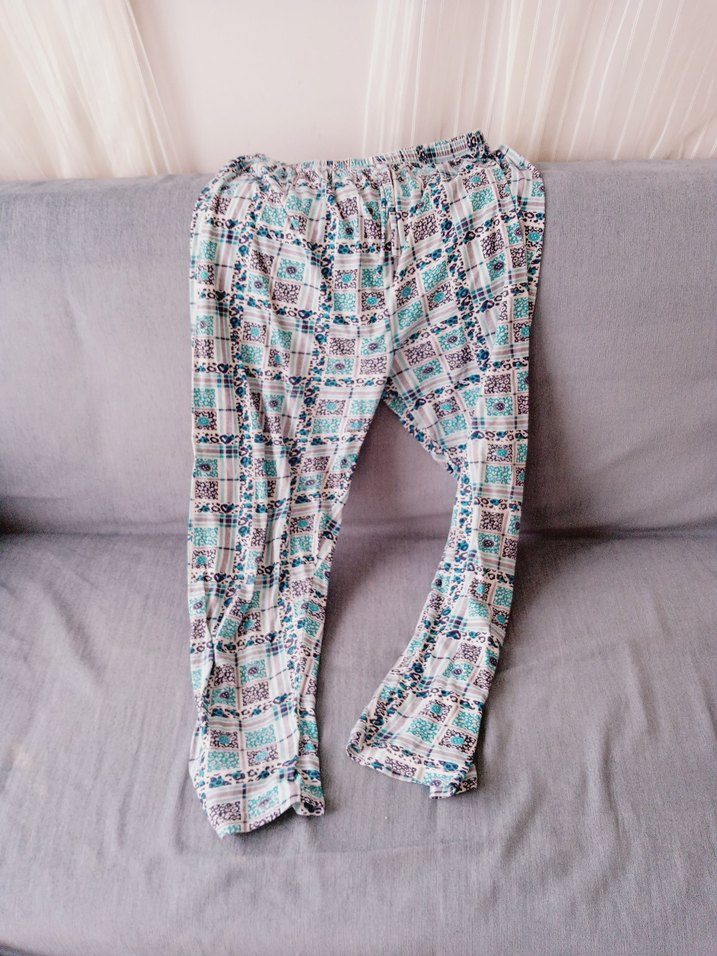 Bohem tarzda, çok renkli pastel tie-dye desenli, bol kesim, midi uzunlukta ve pliseli kadın pantolonu. Yumuşak sentetik kumaştan üretilmiştir.
