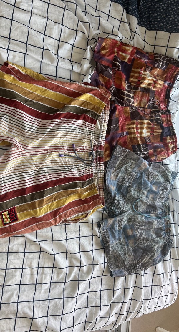 Erkekler için bol kesim, drapeli ve koyu çok renkli tie-dye desenlere sahip bohem tarzda mini mayo. Günlük kullanıma uygun kısa boyda. Tanesi 50 tl.