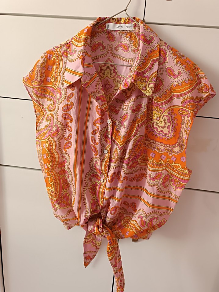 Bohem tarzı kadın gömleği, kısa kollu ve askılı yakaya sahip. İpek gibi kumaştan, pastel çok renkli batik desenli, drapeli ve bağcıklı ön detaylıdır. Günlük kullanım için uygun.