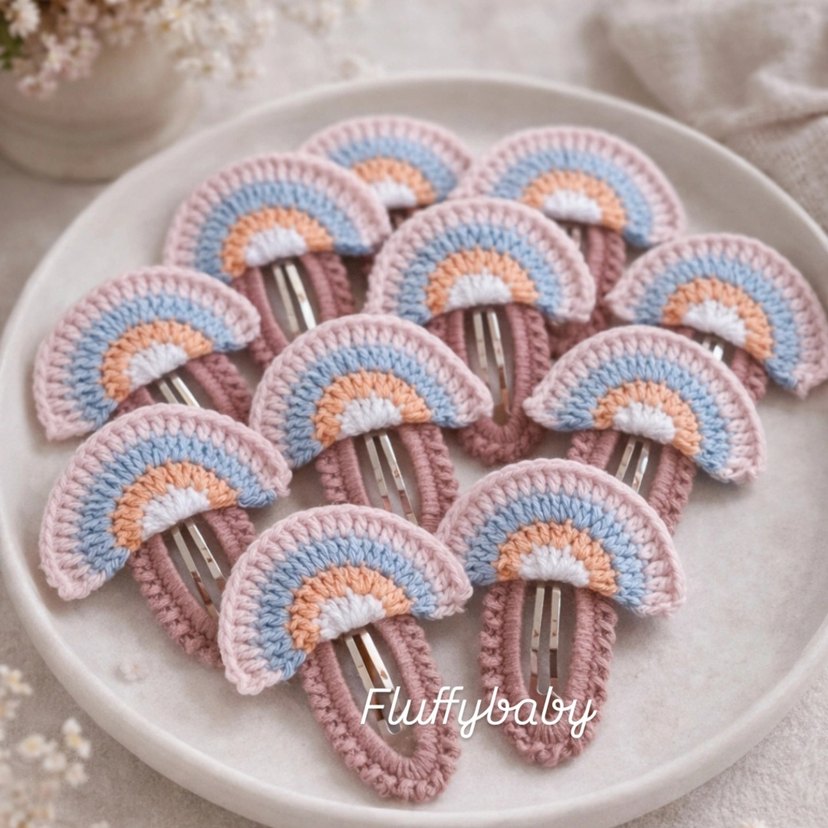 Bohem tarzında, pastel tonlarda örgü çocuk saç tokaları, renkli ve şık bir görünüm sağlar.
