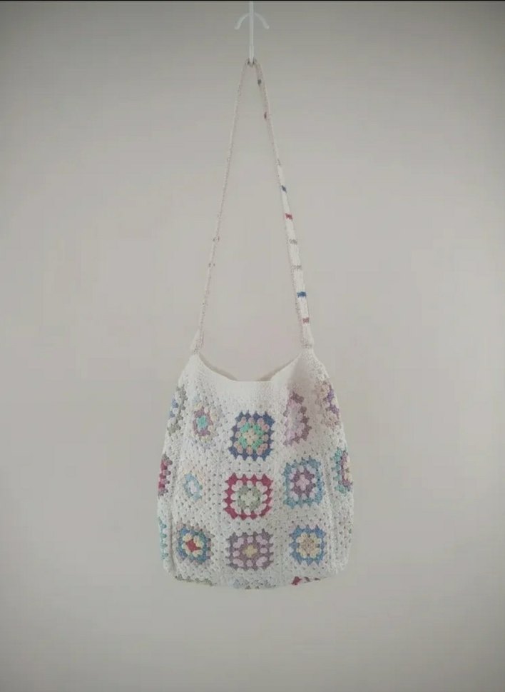 Bu kadın çantası, pastel tonlarda tie-dye desenleri ve dantel detaylarıyla bohem tarzını yansıtan örgü kumaştan yapılmıştır. Uzun askılı, yumuşak ve rahat bir görünüme sahiptir.