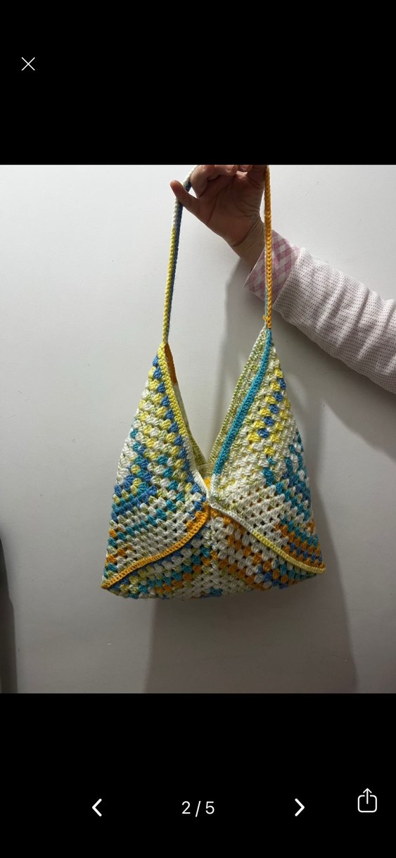 Bohem tarzda, çok renkli pastel tonlarda örgü kadın çantası. Tek askılı ve günlük kullanım için uygundur.