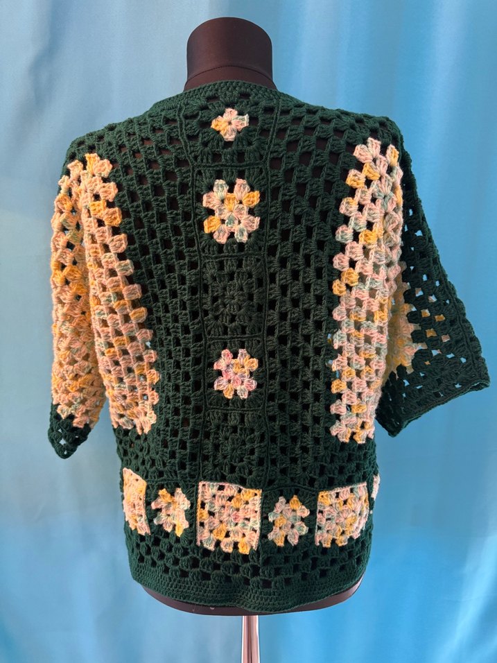 Bohem tarzı, bol kesim midi uzunluğunda çok renkli desenli kadın hırkası. Beden aralığı geniştir El yapımıdır sıfır üründür