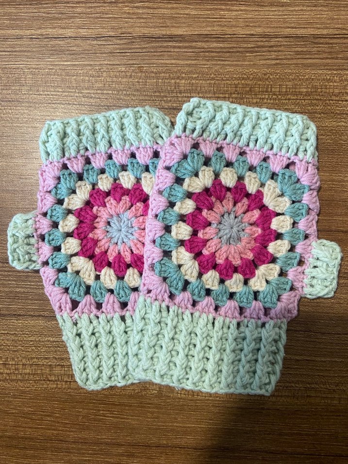 Pastel tonlarda, çok renkli örgü parmaksız eldivenler. Bohem tarzıyla rahat ve retro bir görünüm sunar. İstenilen renk yapılır