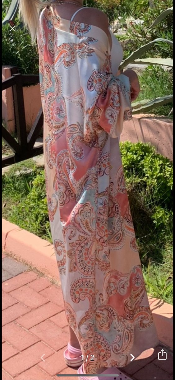 Askılı olmayan, bol kesim, . Pastel tonlarda tie-dye ve paisley desenli, yumuşak sentetik kumaştan yapılmıştır. Açık hava etkinlikleri için uygun. Pareo satendir