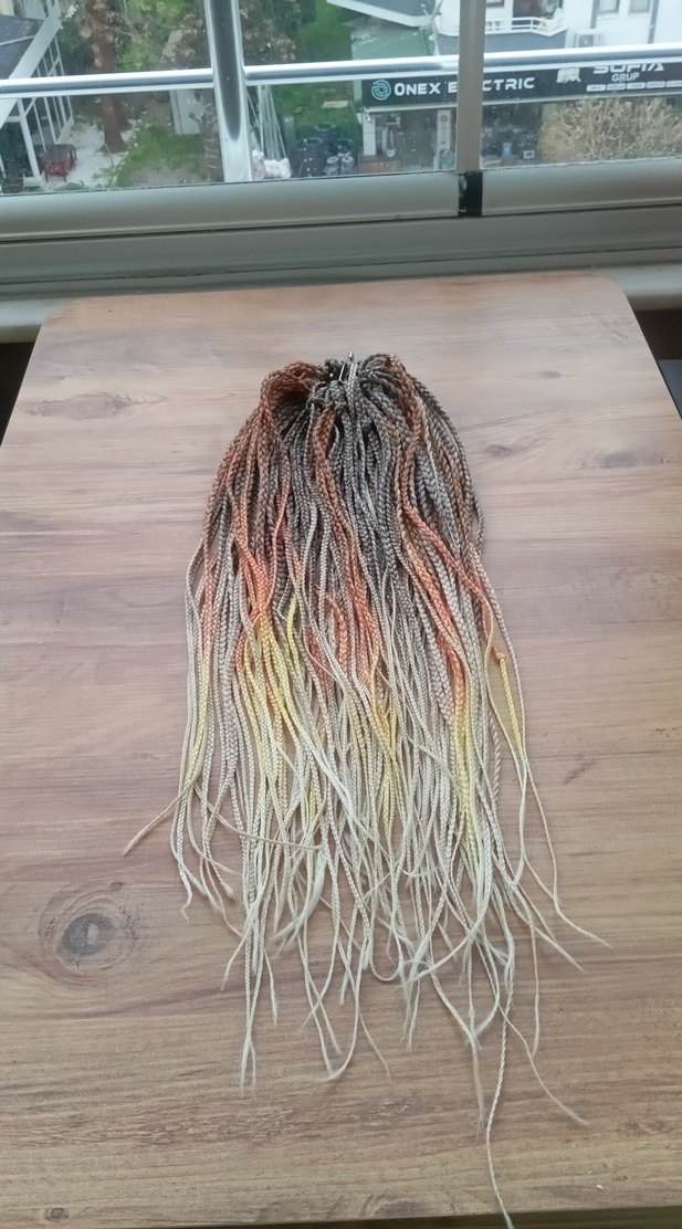 Bohem tarzda, çok renkli püsküllerden oluşan, triko malzemeden yapılmış saç aksesuarı.