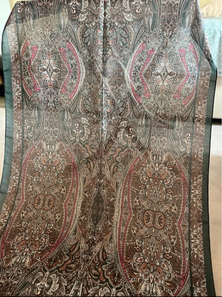Kadınlar için çok renkli, saten kumaştan yapılmış, bohem tarzını yansıtan dökümlü şal.