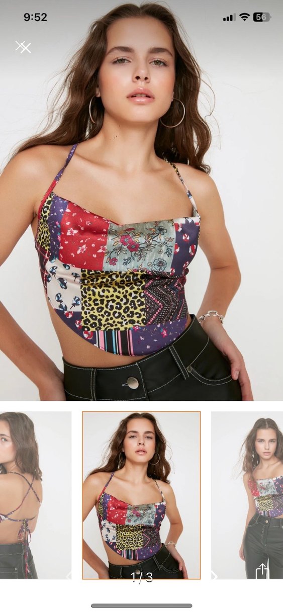 Çok renkli patchwork desenli, straplez ve vücuda oturan bu tekstil büstiyer, bağcıklı detaylara sahiptir. Bohem tarzda günlük sokak modasına uygundur.