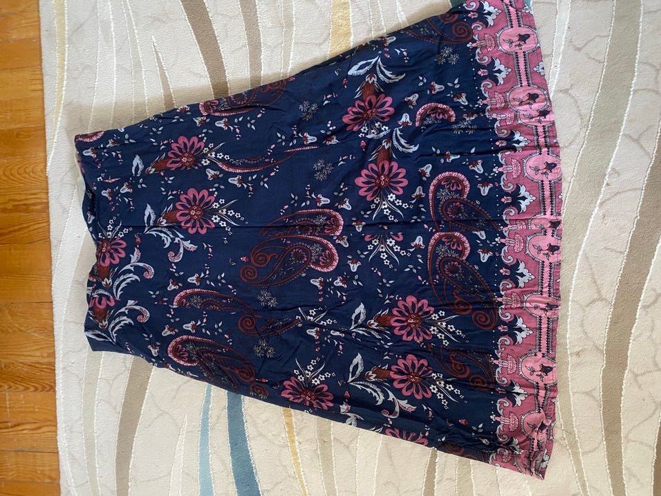 Bohem tarzı, bol kesim ve drapeli tasarıma sahip, koyu çok renkli çiçekli ve paisley desenli uzun etek. Yumuşak tekstil kumaştan üretilmiştir, günlük kullanım için uygundur.