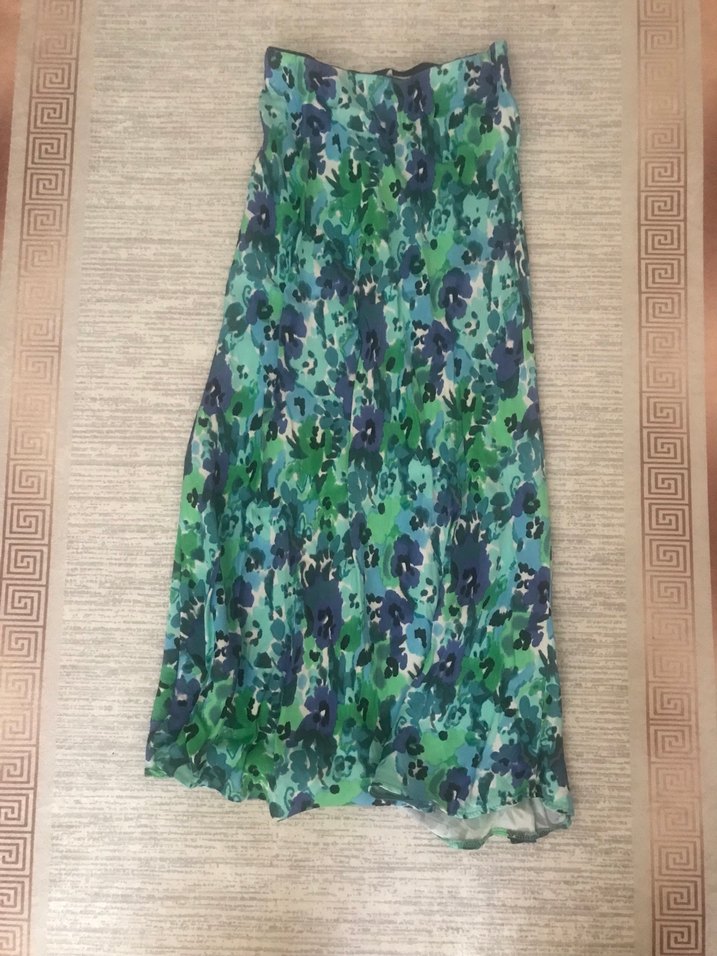 Bohem tarzda, koyu çok renkli batik desenli, bol kesim ve drapeli uzun etek, yumuşak sentetik kumaştan yapılmıştır. rengi normalde daha canli ve guzel