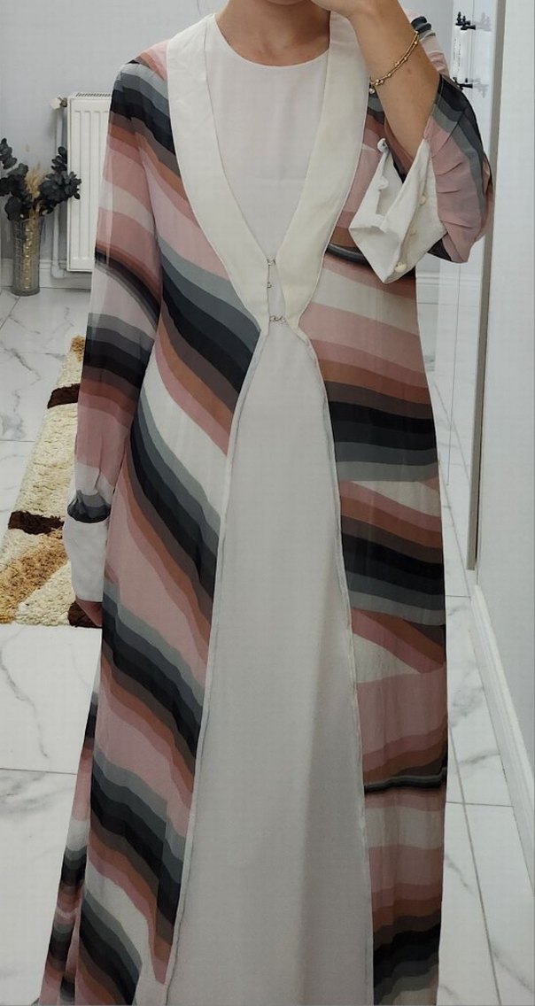 Bohem tarzda, pastel tonlarda çok renkli, dökümlü uzun elbise. Şal hediye olarak gönderilecektir.
